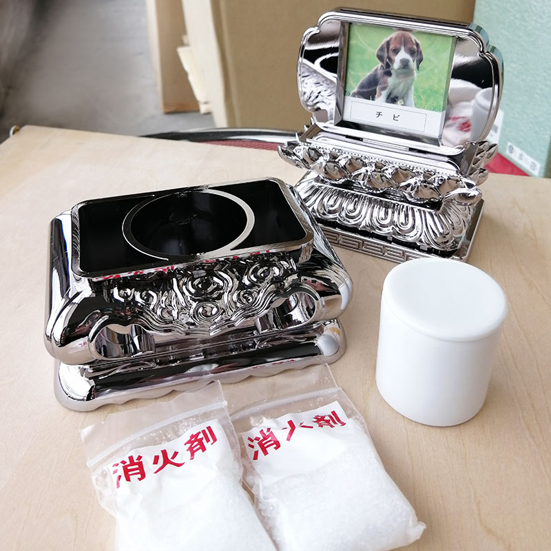 | 商品説明 | 【商品番号:3358】 ■商品詳細 ●サイズ: 本体:高さ約16×幅約11.5×奥行約8.5cm 骨壷(白セト):内寸 巾約3.2cm、内寸 深さ約3.2cm 金属製骨壺(金色):内寸 巾約2.6cm、内寸 深さ約3cm ※未使用品ですが、アウトレット・在庫処分品の為、汚れ、キズがある場合がございます。 ※写真以外でも汚れ・キズ・欠損・などがある場合がございますのでご了承ください。 ※返品不可となりますので、ご了承の上ご注文ください。 大切なペットの写真をミニ骨壷と一緒に飾る事ができます。 万一の火災時でもご遺骨をお守りするための消火剤が入っています。 |