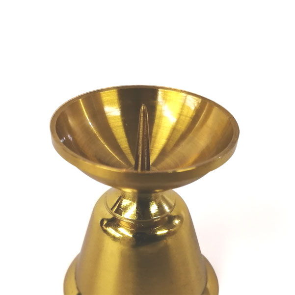 | 商品説明 | 【商品コード:2241】 ■商品詳細 ●寸法:総高さ4.3cm×底径3.2cm 火皿迄の高さ3.7cm ●材質:真鍮 ●色目:金色 ※各寸法の火立に対応するローソク長さは火立の皿までの高さ×1倍~最大1.5倍までです。1.5倍を超えるローソクは立てないでください。 背の低いタイプのローソク立です。 真鋳を金色で上げた重厚感のある仕上がりになっています。 中央部分がネジで連結されています。 |