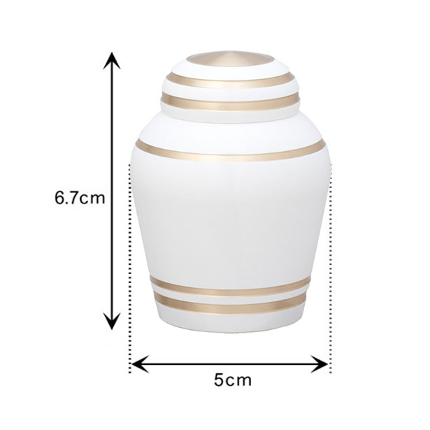 | 商品説明 | 【商品コード:2264】 ■商品詳細 ●材質:真鍮 ●サイズ:外寸 直径5cm×高さ6.7cm/口径 直径2.5cm ●重量:270g 容量:50cc ※1点1点手作業で製作をしています、模様の出方には個体差がありますこと、あらかじめご了承下さい。 ※在庫状況によりお取り寄せになる場合がございます。 大切なご家族のご遺骨を身近に置くことのできる、分骨用のミニ骨壷です。 金属洋食器の産地で有名な新潟県燕市の職人が、型から鋳造、色付けまで一つひとつ丁寧に作り上げた逸品で、 模様も色の出し方も一つとして同じものはありません。 その品質と柔らかな曲線の優しいデザインは、2012年グッドデザイン賞を受賞しております。 手元に置いて毎日声をかけていたいという方や骨壷を置きたいけれど仏壇の収納に収まらないという方、 ご家族で分骨をされる方などにお使いいただけるミニ骨壷となっております。 |