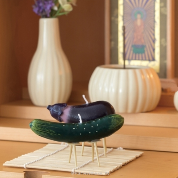 | 商品説明 | 【商品コード:2322】 ■商品詳細 ●重量 : 80 (g) ●サイズ: ナス:φ3.2cm×長さ7cm キュウリ:φ2cm×長さ9.7cm パッケージサイズ:幅11.8cm×長さ11.8cm×高さ6.9cm ●材質:パラフィン(一般的なロウソク原料)・ピック ※こちらの商品は食べられません。 ※火をつける際は、ピックを抜き別途耐熱性のお皿などに移して着火してください。 精霊馬ローソク 故人の好物シリーズ 多くの地方でお盆飾りとして使われる「精霊馬」を、仏壇に飾りやすくミニサイズにして再現しました。 精霊馬は、ご先祖様の送り迎えの乗り物になります。馬はご先祖様が早く帰ってこられるように、牛はゆっくり戻れるようにと言われています。お盆前には、牛と馬を内側に向け、十六日には外に向けて置きます。 本物と違い賞味期限がないので、ずっと飾っておくことができます。 好物キャンドルは、職人が心込めてひとつひとつ丁寧に手作りしています。 『故人が好きだったものを、想いを込めて捧げたい』 そんな思いから誕生した好物キャンドルが、 2015年度グッドデザイン賞を受賞。 人気の「ミニジョッキ」をはじめとした定番アイテムなど様々なラインナップを揃えております。 |