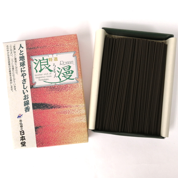 | 商品説明 | 【商品コード:2330】 ●箱サイズ:高さ15.2×幅10.7×奥行3.3cm ●お線香の長さ:約13.6cm ●燃焼時間:約20~25分(立てた場合)※ ※燃焼時間は、場所・気候(室内状態)により変化致します。 「浪漫」は人と環境にこだわり、 ここちよい、ソフトな香りに仕上げています。 お香のような感覚で、ほんのりと香るお線香です。 特選浪漫は、甘さをブレンドしております。 花粉症など、煙に弱い方でも煙が少ないので安心してお使いいただけます。 |