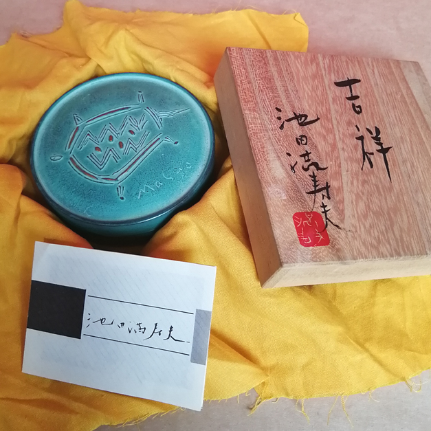 | 商品説明 | 【商品番号:200718No.15】 池田満寿夫デザインの青銅製朱肉入です。 長期に保管していた商品です。 朱肉は入っていますが、機能確認はしておりません(入替が必要になる可能性があります)。 池田 満寿夫は、日本の画家・版画家・挿絵画家・彫刻家・陶芸家・作家・映画監督などの従来の芸術の枠にとどまらず多彩に活躍した芸術家です。 【池田 満寿夫略歴】 1960年 第2回東京国際版画ビエンナーレ展にて文部大臣賞受賞 1966年 第33回ヴェネチア・ビエンナーレ展にて版画部門国際大賞受賞 1969年 第8回リュブリアナ国際版画展でユーゴスラビア芸術アカデミー賞受賞 1977年 小説「エーゲ海に捧ぐ」が第77回芥川賞を受賞 1978年 自作小説「エーゲ海に捧ぐ」を監督・制作 ■商品詳細 ●サイズ: 朱肉入れ:直径約8.5cm、高さ約3.5cm 桐箱:長さ約11cm、幅約11cm、高さ約4.2cm ●材質:青銅 ※未使用品ですが、アウトレット・在庫処分品の為、汚れ、キズがある場合がございます。 ※返品不可となりますので、ご了承の上ご注文ください。 |