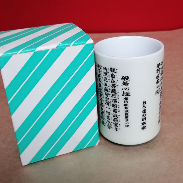 | 商品説明 | 【商品コード:2400】 般若心経が器全体に書きこまれた湯呑となっております。 日本堂のロゴマーク入り。 湯呑自体は、特に目立った汚れや傷はありません。 箱は、古い感じがします。 ■商品詳細 ●サイズ:高さ約8.5㎝、幅約6.5㎝ ●材質:瀬戸物 ※未使用品ですが、アウトレット・在庫処分品の為、汚れ、キズがある場合がございます。 ※返品不可となりますので、ご了承の上ご注文ください。 |