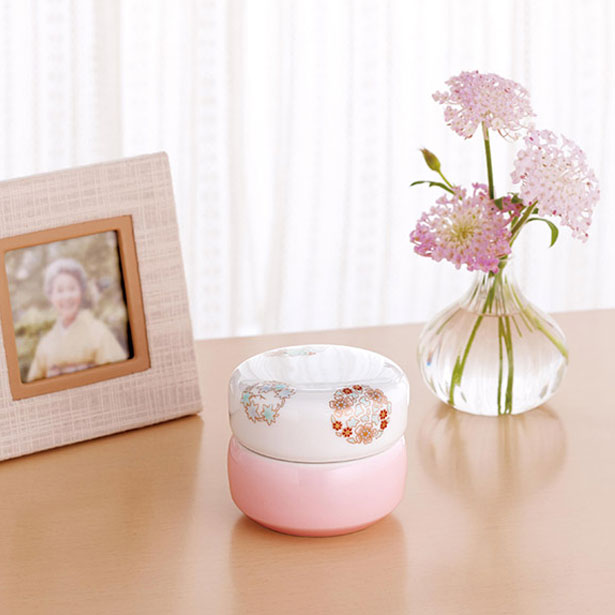 | 商品説明 | 【商品コード:2656】 ■商品詳細 ●材質:磁器 ●サイズ:外寸 胴径約7cm×高さ約6cm 口径約4.2cm/深さ約3.8cm ●重量:150g 容量:100cc ※一つ一つ手作りの為、仕上りが若干異なる場合がございますのでご了承下さい。 ※在庫状況によりお取り寄せになる場合がございます。 創業119年の伝統を受け継ぐ有田の老舗窯元、 深川製磁の技術と伝統が創りあげた骨壷「想い合子」です。 大切な人がいつも美しいものを愛でられるよう、蓋の内側には文様の絵付けが施されています。 骨壺の内側にも釉薬が施された磁肌は、なめらかな肌触りに仕上げられています。 合わせが難しい蓋と胴の部分には、ひとつひとつ匠の「手わざ」により蓋がしっかり締まる安心のロック機能を施しております。 底面には伝統と技術のあかしである深川製磁謹製の銘が入ります。 可憐な姫丸紋が愛らしさを感じさせます。 特製の桐箱に深川製磁謹製の銘をお入れしてお客様にお納めいたします。 ご遺骨用の巾着もお付けしています。 |