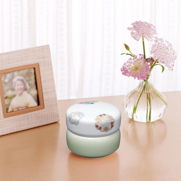 | 商品説明 | 【商品コード:2658】 ■商品詳細 ●材質:磁器 ●サイズ:外寸 胴径約7cm×高さ約6cm 口径約4.2cm/深さ約3.8cm ●重量:150g 容量:100cc ※一つ一つ手作りの為、仕上りが若干異なる場合がございますのでご了承下さい。 ※在庫状況によりお取り寄せになる場合がございます。 創業119年の伝統を受け継ぐ有田の老舗窯元、 深川製磁の技術と伝統が創りあげた骨壷「想い合子」です。 大切な人がいつも美しいものを愛でられるよう、蓋の内側には文様の絵付けが施されています。 骨壺の内側にも釉薬が施された磁肌は、なめらかな肌触りに仕上げられています。 合わせが難しい蓋と胴の部分には、ひとつひとつ匠の「手わざ」により蓋がしっかり締まる安心のロック機能を施しております。 底面には伝統と技術のあかしである深川製磁謹製の銘が入ります。 可憐な姫丸紋が愛らしさを感じさせます。 特製の桐箱に深川製磁謹製の銘をお入れしてお客様にお納めいたします。 ご遺骨用の巾着もお付けしています。 |