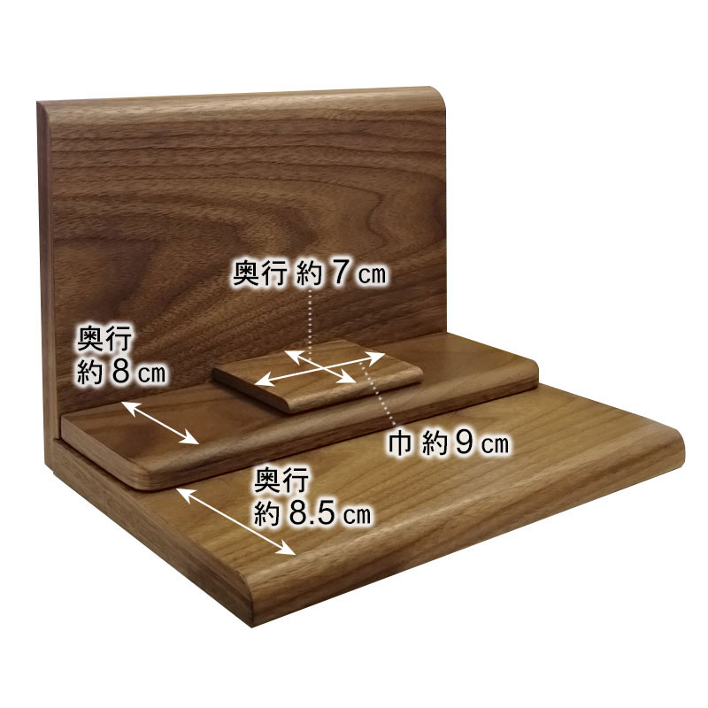| 商品説明 | 【商品番号:2682】 シンプルなデザインでスッキリとした雰囲気。 棚板は取り外し可能、台座も付属しています。 背面の板と台座は10円玉で締めることができる付属のボルト2つを使用して組み立てが簡単にできます。 ■商品詳細 ●材質:ウォールナット ●サイズ:高さ19cm×幅27cm×奥行20cm |