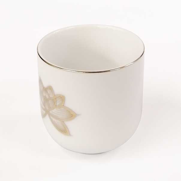 | 商品説明 | 【商品コード:2799】 ■商品詳細 ●商品サイズ:高さ6.3cm×直径6cm ●材質:陶器 ●茶台は、PC茶台2.5寸が対応 ※絵柄は印刷です。 ※本製品は焼き物の為、色・サイズが多少異なる場合がございます。 白地に金の蓮が描かれた伝統的なデザインです。 仏様にお水やお茶をお供えする際にご使用する陶器製のお湯呑みです。 |