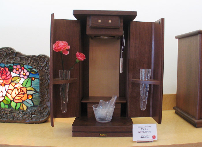 | 商品説明 | 【商品コード:1710】 ■材質詳細 ・材質/ウォールナット、メープル ・仕上/ウレタン塗装 ・付属品/一輪ざし花立2ヶ、香炉1ヶ(クリスタルビーズ付) ■宗派 どの宗派でもお使いいただけます。 ■備考 ・掲載写真の仏具などの組み合わせは一例で別売りとなります。 ウォールナットとメープルの美しい木味を活かしたシンプルなクラフト。 吹きガラスの一輪差しと香炉でオシャレに・・・。 |