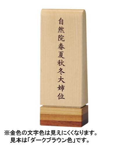 | 商品説明 | 【商品番号:2829】 台座の部分が寄せ木のグラデーションになったクラフト位牌です。 ●札丈 3.5号(10.5cm):高さ14.0cm×幅5.0cm×奥行3.2cm 35、750円(税込) ●札丈 4.0号(12.0cm):高さ16.0cm×幅5.9cm×奥行3.5cm 37、950円(税込) ●札丈 4.5号(13.5cm):高さ18.0cm×幅6.8cm×奥行3.8cm 40、700円(税込) ■商品詳細 ●商品タイプ:木製位牌 ●材質:メープル、アルダー、ニヤトー、ブビンガ ●仕上:ウレタン塗装 ●生産国:日本 ※金色の文字は見えにくくなります。 ※天然木のため一品一品の柄・色味が異なります。 ※寸法は商品と多少異なる場合がございます。 ※上記価格はお位牌本体の料金です。名入れの料金は含まれておりません。 名入れは別途「書き代」又は「彫り代」が必要です。 ※メーカー発注品となります。 ご注文・お問合せを頂いてからメーカーに在庫の確認を致します。(ご注文の流れをご参照ください) ※ご入金確認後にメーカー発注となりますので、お支払い方法で「商品代引き」以外を選択してください。 ※名入は、お客様に名入れの原稿確認をして頂き、文字確認原稿確定後 機械彫の場合は「メーカー営業日の約2週間後の発送」、機械書きの場合は「メーカー営業日の約20日後の発送」となりますので、余裕をもってご注文ください。 |