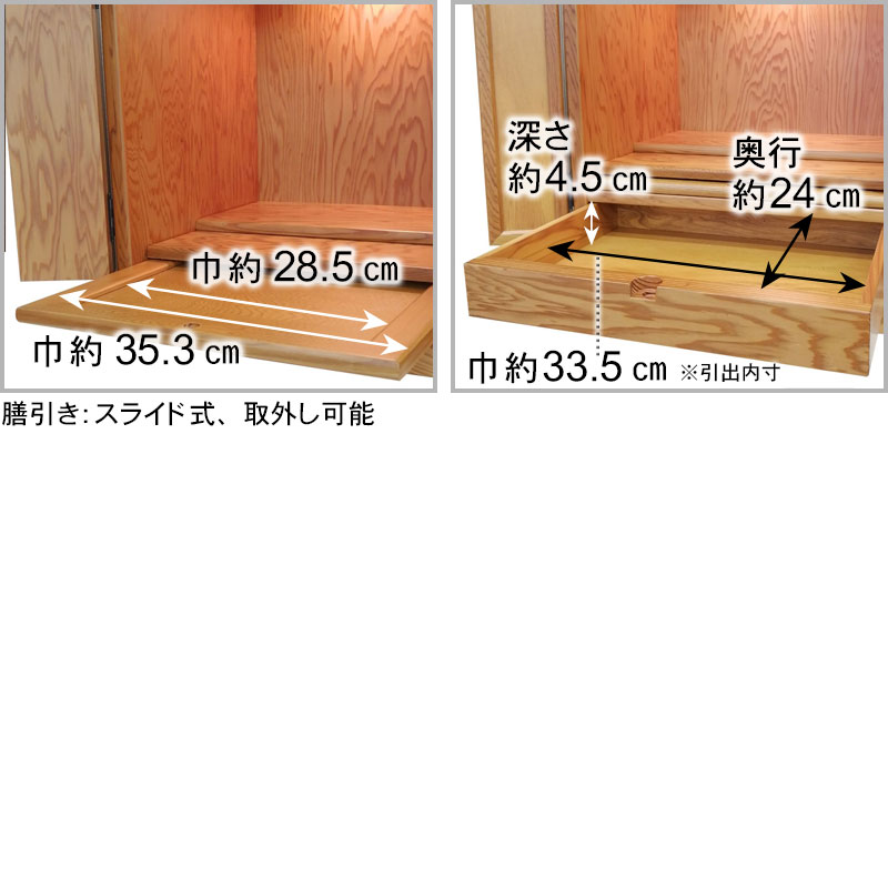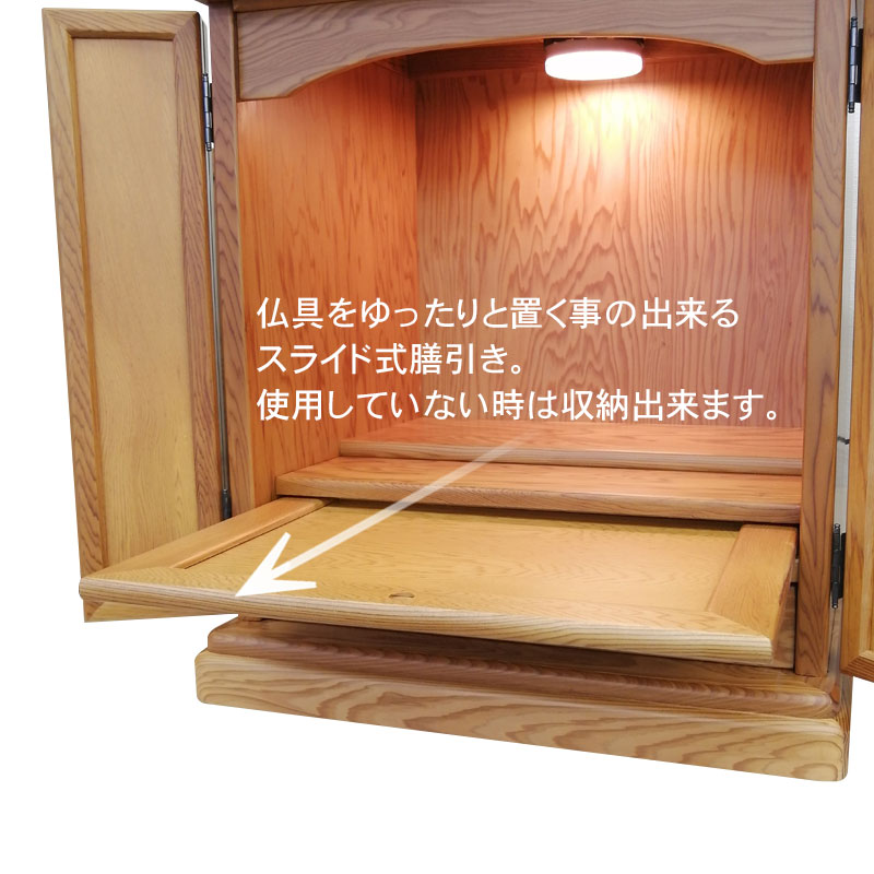 | 商品説明 | 【商品コード:2902】 ■材質詳細 ・笠、台輪/主材料:屋久杉無垢 芯材料:屋久杉無垢 ・戸板、扉/主材料:屋久杉無垢 芯材料:屋久杉無垢 ・大戸軸/主材料:朴(ほうのき) 芯材料:屋久杉厚板貼り ・その他/表面仕上げ:摺漆仕上げ、生産地:日本 ■宗派 どの宗派でもお使いいただけます。 ■備考 ・商品は手作りの為、一部の色、デザイン、寸法が多少変更になる場合がございます。 ・天然木のため一品一品の木目が異なります。 こちらのお仏壇は国の特別天然記念物に指定されている希少材の屋久杉を使用した伝統芸仏壇でございます。 彫などの装飾を出来るだけ省き、シンプルなデザインにすることで、東京仏壇の屋久杉を使用したお仏壇でこの価格が実現しました。 屋久杉は鹿児島県屋久島にて樹齢千年以上の樹木に与えられる称号で、同じ屋久島にある杉材でもその樹齢により名称が変わる木材です。また、特別天然物指定を受けている木材なので、伐採することは許されておらず自然倒木したものだけが製材され市場に出荷されるため安定供給することが不可能なため希少材とされています。 近年の異常気象による超大型台風などの影響で樹齢千年を待たずして倒木してしまうものもあり、屋久杉の稀少性は今後更に上がるとされております。 こちらのお仏壇はその稀少な屋久杉材の無垢・厚板を贅沢に使用したお仏壇です。 【東京仏壇:東京都伝統工芸品東京仏壇とは】 東京仏壇の歴史は、1603年に徳川家康が江戸に開府したことにはじまります。宗教政策の一環として仏寺の建立発展を進めた結果、八代将軍吉宗の時代には一般庶民が競って仏壇を祀るようになりました。その需要に応えるべく、江戸指物師や仏師が独自の技法をつぎこみ仏壇をこしらえたのが、東京仏壇の原型です。 その後、1840年ころからは東京仏壇に唐木が使われるようになり、木地本来の持ち味を生かしながら古典的な優美さも残した、丈夫で長持ちする実用本位の仏壇がつくられます。この伝統と技術を受け継いだ職人(伝統工芸士)が丹念に手づくりしたものが、現在わたしたちが目にする東京仏壇なのです。 現在、東京都伝統工芸品東京仏壇には伝統工芸品である証の伝産マークとシリアルナンバーが記された証紙(シール)が貼付されております。お求めの際はこの証紙をお確かめの上、類似品にはご注意ください。 |