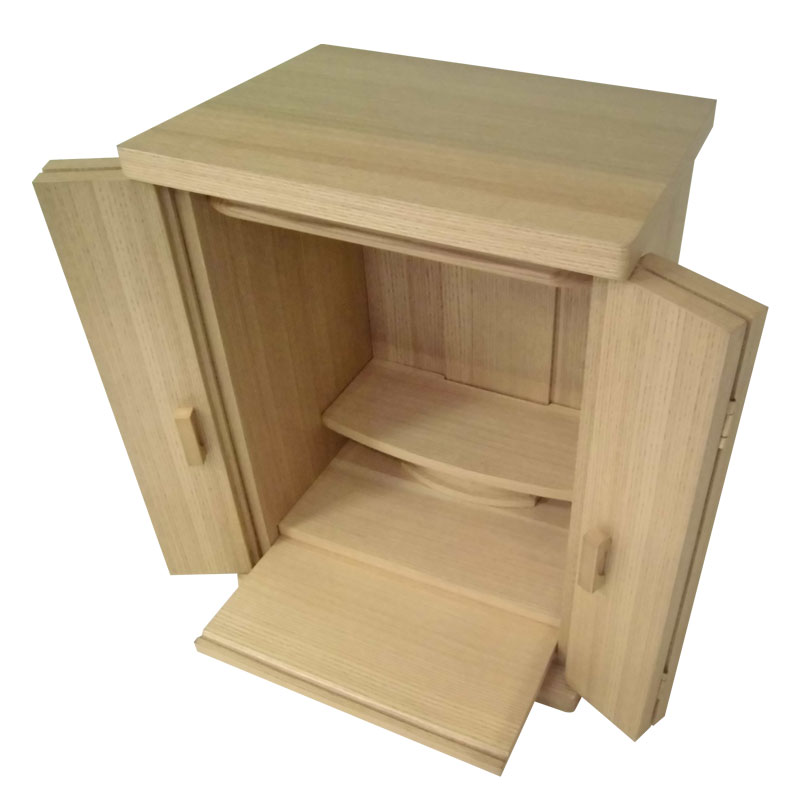| 商品説明 | 【商品コード:2940】 ◎日本堂オリジナル商品 ■材質詳細 ・笠、台輪/主材料:タモ薄板貼り 芯材料:MDF ・戸板、扉/主材料:タモ薄板貼り 芯材料:MDF ・その他/表面仕上げ:ウレタン仕上、生産地:海外 ■宗派 どの宗派でもお使いいただけます。 ■備考 ・商品は手作りの為、一部の色、デザイン、寸法が多少変更になる場合がございます。 コンパクトさが特徴の14号サイズのお仏壇となっております。 現代の住空間に合うサイズ感で、木目を活かしたシンプルなつくりは和洋室どちらにも合うデザインとなっております。 内部の須弥壇は取り外しが可能で、ご本尊や掛軸の大きさに合わせて高さを変えることができます。 また、お仏壇のお手入れがしやすく、奥の方の細かな部分まで、しっかりお手入れして頂くことが出来ます。 タモ材を表面材に使用し馴染みやすい色合いで、洋室やリビングにも自然に溶け込む家具調仏壇となっております。 膳引きは、スライド式となっており、お祀りいただいた仏具をそのまま中に収納して扉を閉めることができます。 内部照明には、LEDライトを採用し暗いお部屋や夜間でも明るく照らします。 |