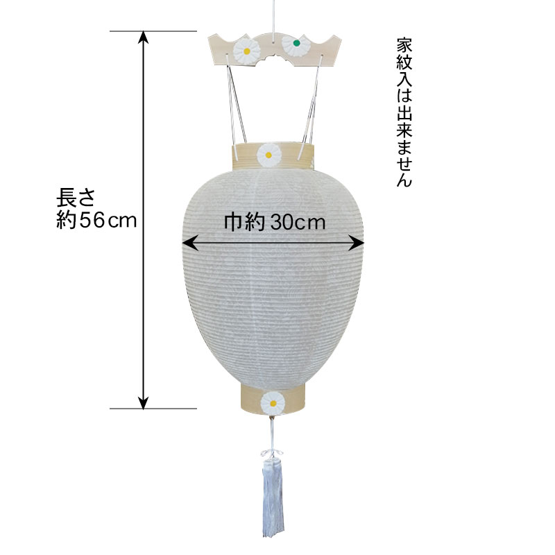 | 商品説明 | 【商品番号:2990】 ■商品詳細 ●寸法:高さ約56cm×火袋巾約30cm ●仕様:火袋/紙張、フレーム/木製 ※ロウソク別売り ※火災の心配のない電池ろうそくをお勧めします。 ■備考: ●実店舗で商品をご覧になる場合は、ご来店希望の店舗に在庫をご確認下さい。 店舗により在庫が異なります。 ●HP掲載商品以外にも多数取り揃えております。 ●数量限定のため売り切れる場合がございます。ご了承ください。 新盆(初盆)は故人の霊が初めて帰ってくるお盆なので、 迷わぬよう目印として軒先などに吊るす新盆用白提灯です。 火袋は白い紋天模様が浮かび品の良いつくりとなっております。 白い提灯は新盆にしか使わないので、使った後は、送り火で燃やしたり、お寺様に収めたりします。 <盆提灯> お盆提灯は一般に絵柄の付いた盆提灯が用いられ、お盆の期間中精霊棚の左右に飾ります。 お盆提灯飾りは一対飾りが基本ですが、盆棚の配置によって1張(個)飾りの場合もあります。 亡くなってからはじめて迎えるお盆は「新盆」といって盛大に供養を行い、ご葬家様は家紋入り提灯ならびに絵柄入り提灯・霊前灯・蓮華灯・等をご購入いただき、故人様の親兄弟・友人・知人は「新盆御見舞」として絵柄入り盆提灯をご葬家にお送りするのが一般的です。 また、新盆御見舞をお送りする場合は、ご葬家様のお盆月(7月もしくは8月)の一日に届くようにお送りする習わしがあります。 |
