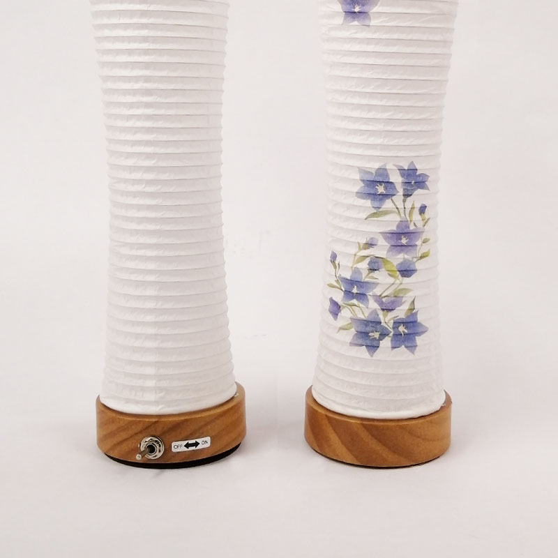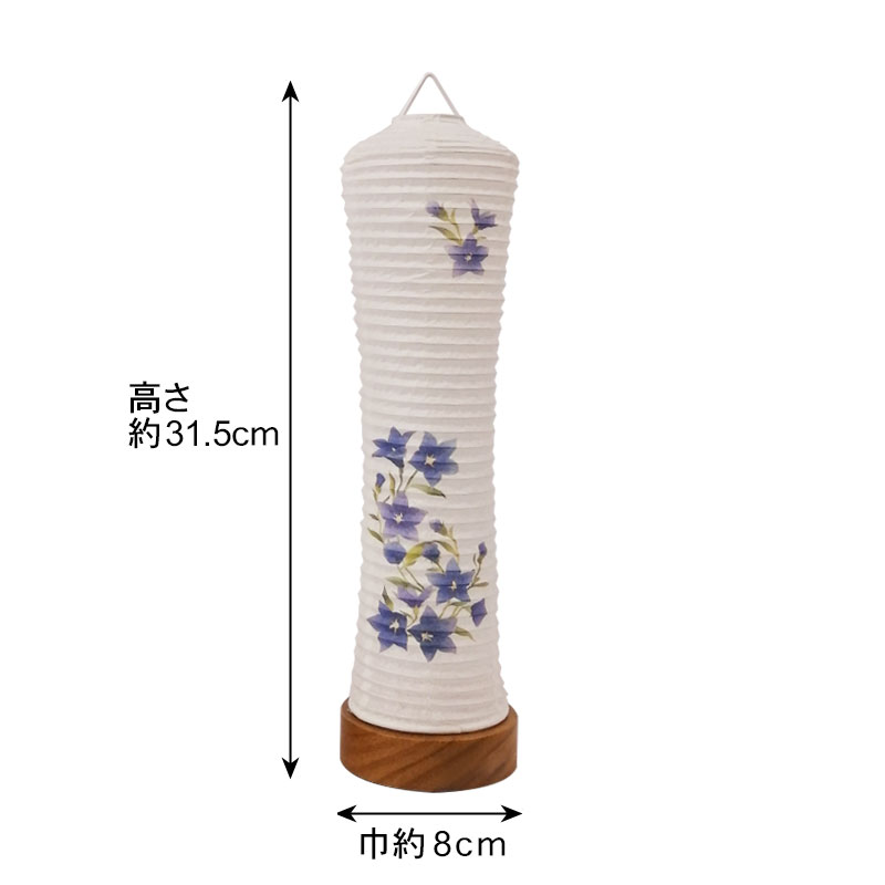 | 商品説明 | 【商品番号:2997_35801、34928】 ■商品詳細 ●寸法:高さ約31.5cm×巾約8cm ●仕様:美濃和紙、松無垢材 ●器具:LEDゆらぎタイプ(1W×2) ●付属品:単三電池4本付属 ●紙箱入り ■備考: ●実店舗で商品をご覧になる場合は、ご来店希望の店舗に在庫をご確認下さい。 店舗により在庫が異なります。 ●HP掲載商品以外にも多数取り揃えております。 ●数量限定のため売り切れる場合がございます。ご了承ください。 美濃和紙にやさしい桔梗の絵柄が描かれた現代風行灯となっております。 左右に飾れる2個セット(一対)で、コードレスの為場所を気にせず置いていただけます。 <盆提灯> お盆提灯は一般に絵柄の付いた盆提灯が用いられ、お盆の期間中精霊棚の左右に飾ります。 お盆提灯飾りは一対飾りが基本ですが、盆棚の配置によって1張(個)飾りの場合もあります。 亡くなってからはじめて迎えるお盆は「新盆」といって盛大に供養を行い、ご葬家様は家紋入り提灯ならびに絵柄入り提灯・霊前灯・蓮華灯・等をご購入いただき、故人様の親兄弟・友人・知人は「新盆御見舞」として絵柄入り盆提灯をご葬家にお送りするのが一般的です。 また、新盆御見舞をお送りする場合は、ご葬家様のお盆月(七月もしくは八月)の一日に届くようにお送りする習わしがあります。 |