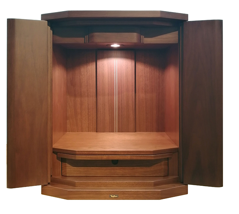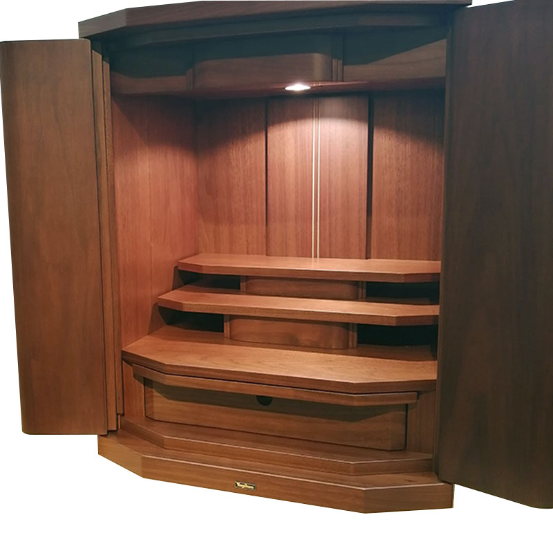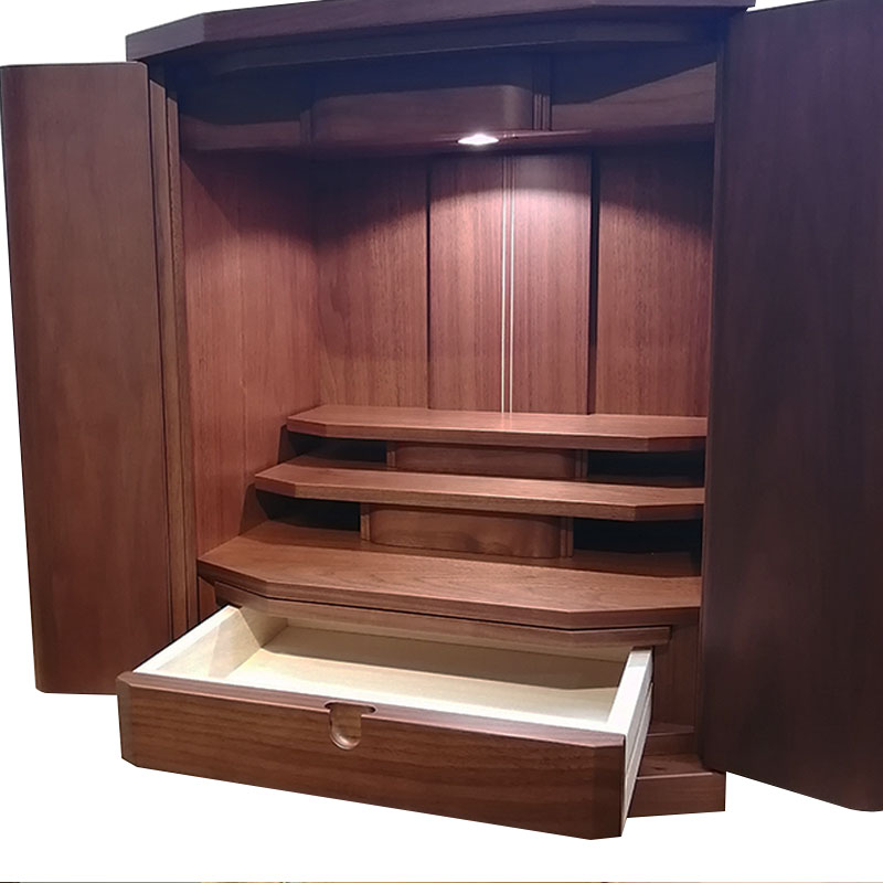 | 商品説明 | 【商品コード:3091】 ■材質詳細 ・材質/ウォールナット ・仕上/ウレタン塗装 ・仕様/引き出し付き ・須弥壇の取り外し可能 ・ストレートヒンジ使用 ■宗派 どの宗派でもお使いいただけます。 ■備考 ・掲載写真の仏具などの組み合わせは一例で別売りとなります。 ウォールナットの無垢をシンプルな造形で仕上げました。 |