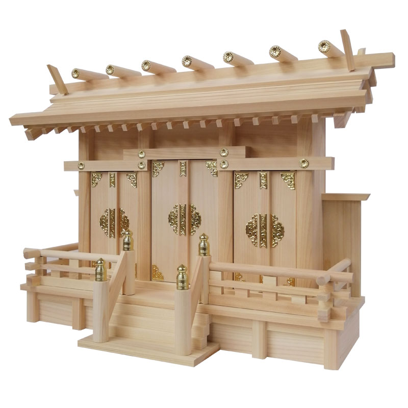 | 商品説明 | 【商品番号:3101】 ■商品詳細 【小】39、800円 ・外寸法:高さ約37cm×巾約52cm×奥行約22cm ・内部寸法:高さ約25cm×幅約32cm×奥行約5.5cm (小は内部に区切りがありません) ■備考 ・商品は手作りの為、一部の色、デザイン、寸法が多少変更になる場合がございます。 屋根がひとつですっきりとしたデザインの通し屋根三社です。 正面の扉は開け閉めができ、お神札が納めやすいように扉全体を手前に引くと扉を外すことが出来ます。 屋根の左右の千木は差し込み式で、社の回廊部分は三段の組高欄(くみこうらん)造りとなっております。 お札の納め方は、中心に「天照皇大神宮」向かって右側に「氏神様」左側に「崇敬神」と言う順でお納めします。 |
