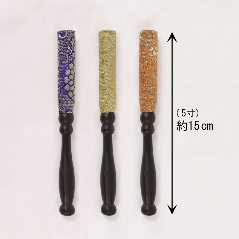 | 商品説明 | 【商品コード:3178】 ■商品詳細 ●リン棒:長さ 約15cm ●材質:本体/黒檀 ※1本の価格です。 ※色・サイズが多少異なる場合がございます。 ※色により、在庫切れの場合がございます。ご了承下さい。 黒檀の棒に、リンを打つ部分に布が巻いてありますので柔らかい音が出ます。 色が3色(朱色・紫色・金色)あるので、お好みの色をお選びください。 在庫切れの場合は、その旨ご連絡致します。 |