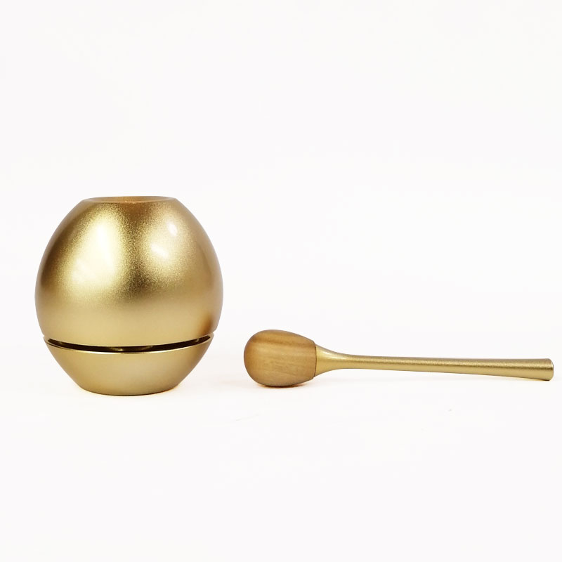 | 商品説明 | 【商品番号:3194】 ■商品詳細 ●商品サイズ: 1.8寸/φ5.5cm、高さ12.9cm ●素材: リン/真鍮 リン棒先端木部/さくら さくらんぼのような形が愛らしい「Cherin」は、コンパクトで場所を取りませんし、佇まいはまるでオブジェのよう。 上部の穴にりん棒を立てておさめるようになっていますが、叩いた後すぐにりん棒を戻しても、音が鳴り止むことはありません。 黒色の敷布の上に置くことで、より美しい音色を響かせることができます。 祈りを特別なものではなく、リビングや寝室にそっとしつらえて、生前と同じように、家族との団らんの中やパートナーとの語らいで話しかけるように、心を楽に鳴らしてみてください。 |