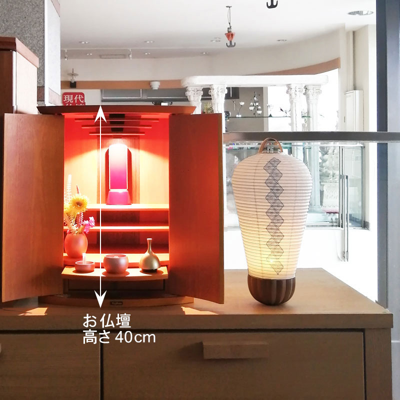 | 商品説明 | 【商品番号:3202_37620】 ■商品詳細 ●寸法:高さ約33cm×巾約17cm ●材質: ベース部分:天然無垢材 セード:美濃和紙 取っ手:牛革 ●仕様: コードレス電池式 70時間連続点灯 ●付属品: 単三電池×2(テスト用マンガン電池付) LED電球色×1 ■備考: ●実店舗で商品をご覧になる場合は、ご来店希望の店舗に在庫をご確認下さい。 店舗により在庫が異なります。 ●HP掲載商品以外にも多数取り揃えております+。 ●数量限定のため売り切れる場合がございます。ご了承ください。 美濃和紙に菊紋様をあしらった現代風の行灯で、昔から馴染みのある形を現代の生活空間に合わせたデザインとなっております。お盆以外にもインテリア照明としてもお使い頂けます。 省スペース設計でコードレスの為簡単に持ち運べ、 お仏壇や祭壇の両脇はもちろん、玄関に置いてお迎えの灯りとしてお使いいただけます。 和紙のセード部分は、マグネット式で取外しが簡単です。 ON・OFFスイッチは裏面についております。 <盆提灯> お盆提灯は一般に絵柄の付いた盆提灯が用いられ、お盆の期間中精霊棚の左右に飾ります。 お盆提灯飾りは一対飾りが基本ですが、盆棚の配置によって1張(個)飾りの場合もあります。 亡くなってからはじめて迎えるお盆は「新盆」といって盛大に供養を行い、ご葬家様は家紋入り提灯ならびに絵柄入り提灯・霊前灯・蓮華灯・等をご購入いただき、故人様の親兄弟・友人・知人は「新盆御見舞」として絵柄入り盆提灯をご葬家にお送りするのが一般的です。 また、新盆御見舞をお送りする場合は、ご葬家様のお盆月(7月もしくは8月)の一日に届くようにお送りする習わしがあります。 また、お盆の行事は故人の新盆から三十三回忌まで毎年行います。 |