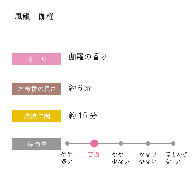 | 商品説明 | 【商品コード:3226】 ■商品詳細 ●伽羅の香り ●内容量:約15g ●お線香の長さ:約6cm ●煙量:通常(煙の出る)タイプ ●燃焼時間:約13分 ●パッケージサイズ:長さ8×幅8×高さ2.5cm ※燃焼時間は、場所・気候(室内状態)により変化致します。 風雅 枯淡 幽玄な香りです。 真に自然がつくり上げた極みの名香です。 伽羅は、沈香の最高級品です。 仏事だけでなく さりげない香りのおもてなしとしてもご使用いただけます。 |