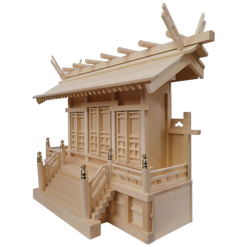 | 商品説明 | 【商品番号:2120】 ■商品詳細 【2.5尺】205、700円 ・外寸法:高さ約54cm×巾約84cm×奥行約26.5cm ・内部寸法:高さ約30cm×幅約42cm×奥行約8cm ■備考 ・商品は手作りの為、一部の色、デザイン、寸法が多少変更になる場合がございます。 屋根がひとつですっきりとしたデザインの通し屋根三社です。 正面の扉は開け閉めができ、お神札が納めやすいように屋根全体を上に持ち上げて屋根を外すことも出来ますので御札を納める際に便利です。 屋根の左右の千木は差し込み式で、社の回廊部分は三段の組高欄(くみこうらん)造りとなっております。 扉のデザインは手の込んだ唐戸でご用意致しました。扉が開け閉め出来ます。 お札の納め方は、中心に「天照皇大神宮」向かって右側に「氏神様」左側に「崇敬神」と言う順でお納めします。 |