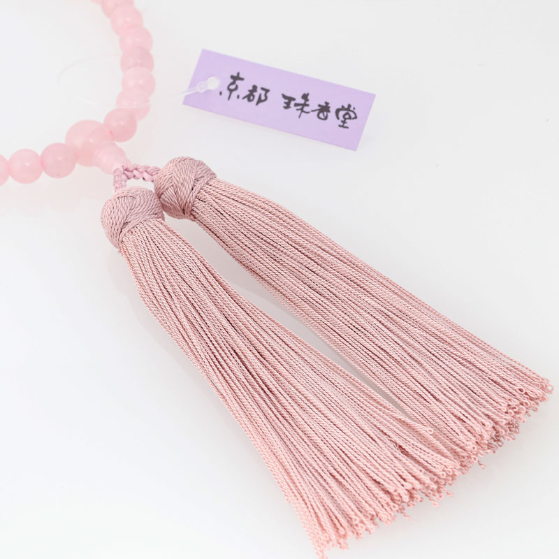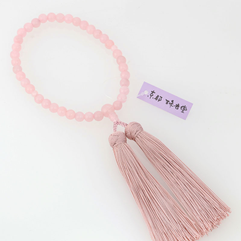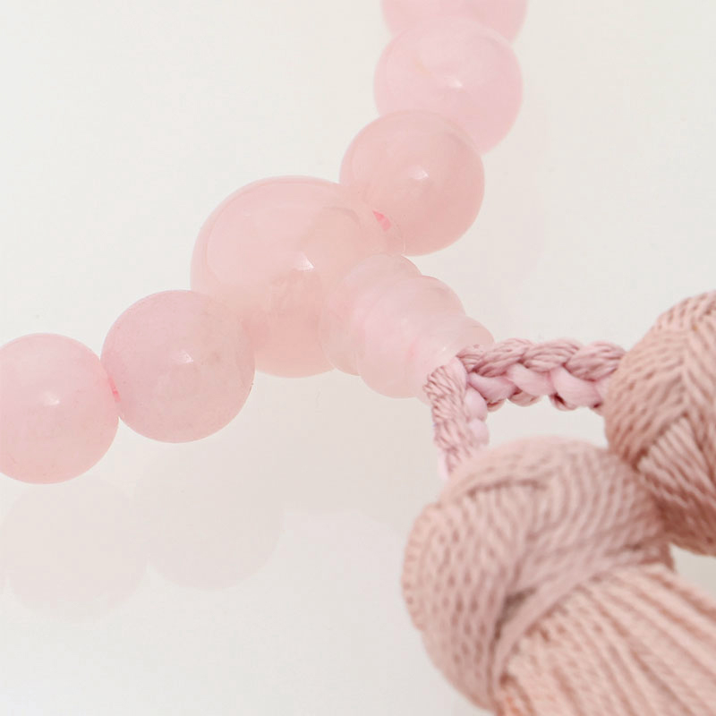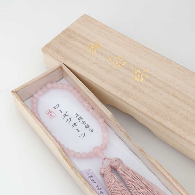 | 商品説明 | 【商品コード:3268】 ■珠の素材 ●主珠:ローズクォーツ(紅水晶)(約7mm) ●親珠:ローズクォーツ(紅水晶)(約10mm) ●天珠:ローズクォーツ(紅水晶)(約5m) ■房の素材 ●正絹頭付房(房、通し糸共正絹) ■特徴 主珠、親珠、天珠にローズクォーツ(紅水晶)を使った女性用の数珠です。 ローズクォーツは、石英(クォーツ)の中でもピンク色をした石で、古代ローマの時代から、美しさの秘薬として活用されたと伝えられています。 美しい艶と上品な優しい色合いは女性に大変人気があります。 頭付房には高級素材の正絹を使用しており京都の数珠職人が匠の技で仕立てた逸品でございます。 数珠は、寿珠とも言われ縁起のいいプレゼントとして、成人式や就職祝いなどに贈られることが多いようです。 進物用の商品につきましては、包装をしてお届けいたします。 「志」「御祝」などの、のし紙も無料でお付けすることができます。 包装やのし紙をご希望の方は、お客様情報入力ページの「ご連絡事項」欄にご記入ください。 ■宗派 どの宗派でもお使いいただける片手略式数珠です。 ■備考 ●数珠は桐箱入り(桐箱は防腐成分や虫よけの成分を含み、湿気予防にも最適です。保管の際は、防虫剤を一緒に入れると虫食い予防になります。) ●天然素材のため商品には若干の差があります。 |