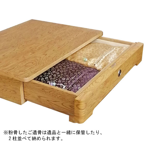 | 商品説明 | 【商品番号:3271】 ◎日本堂オリジナル商品 ご遺骨をパウダー状に粉骨し ご自宅で、故人を偲ぶことのできる新しいご供養のかたちです。 「日本堂オリジナル お参り壇」は、粉骨したご遺骨を家具のような自然な造りのお参り壇に収め、亡くなった家族を身近に感じながら、ご自宅でご供養できます。天板にはお仏壇をのせて仏教方式でお祀りしてもいいですし、供養台として故人の写真や思い出で飾るなど、伝統にこだわらない自由な形でご供養することができます。 鍵が付いているので、不用意に開けられることもありません。 開けてもすぐに中が見えないように、取外し可能な内蓋がついています。 粉骨したご遺骨は遺品と一緒に保管したり、また2柱並べて納める事もできます。 ■商品詳細 ●カラー:屋久杉調 ●サイズ:高さ10×幅53×奥行39cm ※粉骨、洗骨には別途料金が必要です。 |