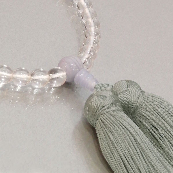| 商品説明 | 【商品コード:3285】 ■珠の素材 ●主珠:水晶(約7mm) ●親珠:カルセドニー(約10mm) ●天珠:カルセドニー(約5mm) ■房の素材 ●正絹古都房(房、通し糸共正絹) ■特徴 主珠に水晶、親珠、天珠にカルセドニーをアクセントとして使った女性用の数珠です。 水晶はクリスタルとも呼ばれ、無色透明な石で、日本の国石(象徴石)にも選ばれています。 カルセドニーは、淡い水色の天然石の表面には穏やかな波模様が現れており、女性らしい柔らかな色合いが品の良さを感じさせてくれます。 カルセドニーは水晶と同じ石英グループの一種で、和名では玉髄(ぎょくずい)といいます。 独特の優しさや色合いが昔から親しまれてきた女性に人気の数珠となっております。 透明な水晶の輝きに、カルセドニーの淡い水色がポイントになり、上品な雰囲気を演出することが出来ます。 頭付松房には高級素材の正絹を使用しており京都の数珠職人が匠の技で仕立てた逸品でございます。 数珠は、寿珠とも言われ縁起のいいプレゼントとして、成人式や就職祝いなどに贈られることが多いようです。 進物用の商品につきましては、包装をしてお届けいたします。 「志」「御祝」などの、のし紙も無料でお付けすることができます。 包装やのし紙をご希望の方は、お客様情報入力ページの「ご連絡事項」欄にご記入ください。 ■宗派 どの宗派でもお使いいただける片手略式数珠です。 ■備考 ●数珠は桐箱入り(桐箱は防腐成分や虫よけの成分を含み、湿気予防にも最適です。保管の際は、防虫剤を一緒に入れると虫食い予防になります。) ●天然素材のため商品には若干の差があります。 |