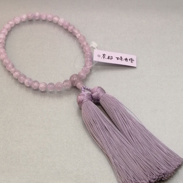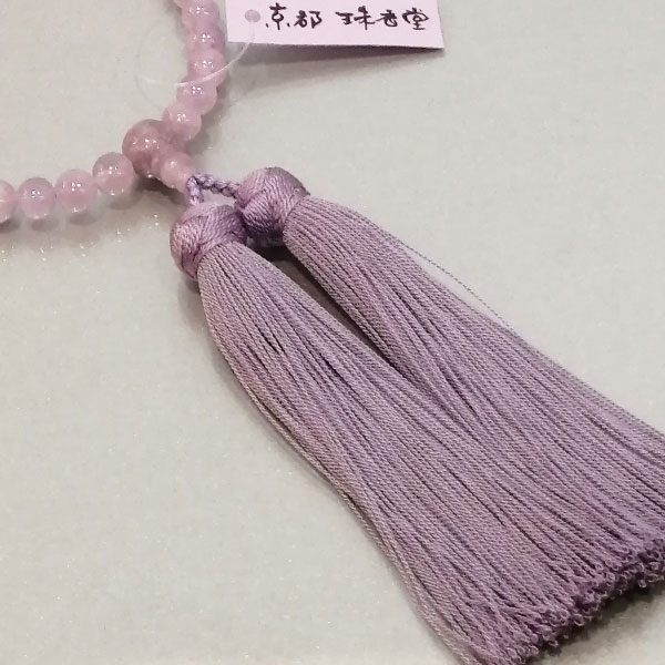 | 商品説明 | 【商品コード:3290】 ■珠の素材 ●主珠:藤雲石(約7mm) ●親珠:藤雲石(約10mm) ●天珠:藤雲石(約5mm) ■房の素材 ●正絹古都房(房、通し糸共正絹) ■特徴 主珠、親珠、天珠に藤雲石を使った女性用の数珠です。 藤雲石は、紫色の薄いアメジスト(紫水晶)の中で白色の雲のような模様があり、柔らかな藤色が魅力のひとつです。 藤雲石のやさしく落ち着いた色合いは、年齢を問わずご使用いただける仕上がりとなっております。 頭付松房には高級素材の正絹を使用しており京都の数珠職人が匠の技で仕立てた逸品でございます。 数珠は、寿珠とも言われ縁起のいいプレゼントとして、成人式や就職祝いなどに贈られることが多いようです。 進物用の商品につきましては、包装をしてお届けいたします。 「志」「御祝」などの、のし紙も無料でお付けすることができます。 包装やのし紙をご希望の方は、お客様情報入力ページの「ご連絡事項」欄にご記入ください。 ■宗派 どの宗派でもお使いいただける片手略式数珠です。 ■備考 ●数珠は桐箱入り(桐箱は防腐成分や虫よけの成分を含み、湿気予防にも最適です。保管の際は、防虫剤を一緒に入れると虫食い予防になります。) ●天然素材のため商品には若干の差があります。 |