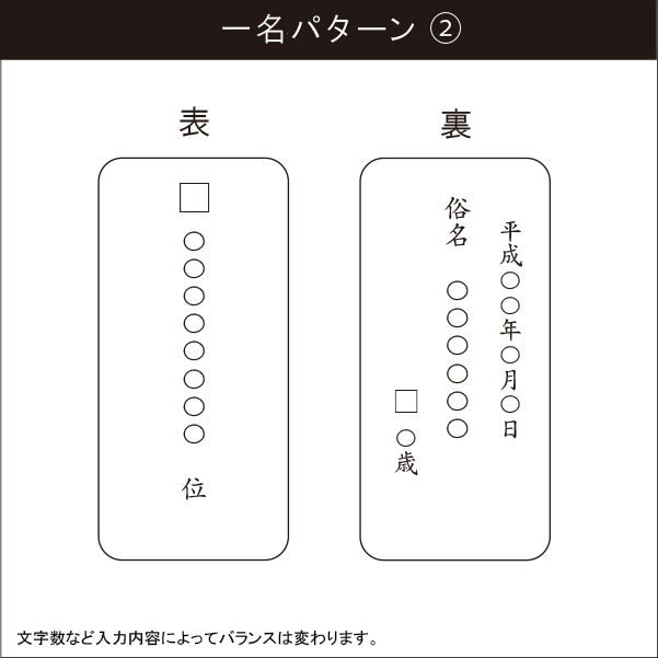 | 商品説明 | 【商品番号:3295】 お位牌本体ではありません。 必ずお位牌と一緒にご注文ください。 一度書いた文字は修正ができませんので、必ず下記をよく読んで文字の名入れをお知らせください。 【ご用意いただくもの】 戒名、没年月日、俗名(故人のお名前)、没年齢(故人の年齢)が分かる「白木位牌」「戒名用紙」を写真に撮ってご注文後メールにてお送りください。 メールはタイトルを「彫文字用、戒名・白木位牌写真」として、「注文者のお名前」「お電話番号」「今回ご購入の商品名」をご記入ください。 メールドレス sales@nihondou.co.jp 【オプション選択にて以下の内容をご入力ください】 ●ご希望納期 ●法要日 ●宗派 ●お位牌に入れる文字 戒名・法名 俗名(故人のお名前) 没年齢(故人の年齢) 没年月日 ●文字の色/表面 色、裏面 色 ●ご希望のレイアウトのパターン 【納期について】 納期は、お客様に彫文字の原稿確認をして頂き、文字確認原稿確定後「メーカー営業日の約2週間後の発送」となります。原稿の確認にもお時間を要します。余裕をもってご注文ください。 【原稿について】 基本的に弊社では「白木位牌」や「戒名用紙」に沿って原稿を作製致します。 故人の年齢の行年・享年の入れ方や戒名の下に「位」を入れるなど、先祖位牌に合わせて白木位牌より変更する場合があります。 また、以下のご説明では一般的な文字入れを記しておりますが、あくまでも一例です。どの文字を入れる・入れないというご指定は「お客様やご住職の判断」となります。事前に菩提寺やご住職にご相談の上、お入れする文字をご確認ください。 (弊社で作成した原稿を、菩提寺やご住職にご確認いただくと確実かと存じます) 【文字入れについて】 機械彫は札板に機械で文字を彫り、そこに金を箔押しします。 しっかりと彫られているため経年劣化が少なく、文字の美しさが長持ちします。 【お位牌にお入れする文字】 ■戒名・法名 先代のお位牌に合わせるなど、戒名の下に「位」や「霊位」などを付ける場合は、ご入力の際に「位」や「霊位」までご入力ください。 ・真言宗は、一般的には大日如来を示す梵字の「ア」字を記入してます。 ・白木位牌に入っている「新帰元」「帰元」「新円寂」などの文字は一般的に本位牌には入れません。 ・一戒名のお値段です。二名彫りより別途料金が発生します。 ■俗名(故人のお名前) ・生前の名前を入れ、一般的には名前の上に「俗名」と記入します。 ■没年齢(故人の年齢) 没年齢を記載の際は、以下の点をご注意ください。 ・先祖位牌に「行年」とあり、白木の位牌に「享年」とある場合等、先祖位牌に合わせて行年・享年を変更する場合があります。お寺様によって没年例の数え方が違うので、ご不明な点は菩提寺やご住職にお尋ねください。 記入例)「行年〇〇才」「行年〇〇歳」「享年〇〇才」「享年〇〇歳」「(行年・享年を付けない)〇〇才」「(行年・享年を付けない)〇〇歳」「(その他の文言)〇〇才」「(その他の文言)〇〇歳」「行年〇〇(才・歳を付けない)」「享年〇〇(才・歳を付けない)」等々 ■没年月日 亡くなった日を記入します。 ・白木の位牌の年月日の下に「没」「寂」などの文字が書かれている場合は一般的には省きます。 【梵字について】 梵字は、真言宗なら「ア」・浄土宗なら「キリーク」・浄土真宗なら「法名」など、宗派により異なり、さらに地域によっては入れない場合があるなど様々です。 ご不明な点は菩提寺やご住職にお尋ねください。 【文字の色について】 一般的には全て金色です。 ・金・朱・白・群青(位牌の札板の表が総金の場合)の4色からお選びいただけます。 ・表面:金文字が一般的です。 ・裏面:金文字が一般的です。 関東圏では、裏面に俗名・行年を入れて朱色を使う事が多いようです。 【家紋入れ】 家紋をお位牌に入れることでそのお家を表し、格式高くなります。 ・家紋入れは別途料金が発生します。 ・家紋部分のみ彫ではなく「書き」になります。 |