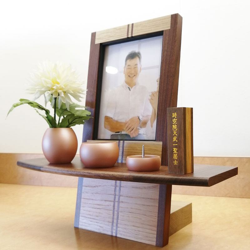 | 商品説明 | 【商品番号:3301】 寄木細工の、小さなお位牌です。 供養ステージやミニ仏壇によく合います。 また、手のひらに収まるくらいのサイズで細かい装飾のないシンプルな設計の為、生前は叶わなかった、旅行の約束や出張先などに持って行くことも出来ます。 お位牌を持ち歩く場合には、移動中には白い布に包むか、巾着袋のような袋に入れることをおすすめいたします。 ●2.0号:高7.0cm×巾2.0cm×奥行2.0cm 8、850円(税込) ■商品詳細 ●商品タイプ:木製位牌 ●仕様:ウォールナット ●仕上:ウレタン塗装 ●国産 ※天然木のため一品一品の柄・色味が異なります。 ※寸法は商品と多少異なる場合がございます。 ※上記価格はお位牌本体の料金です。名入れの料金は含まれておりません。 名入れは別途「書き代」又は「彫り代」が必要です。 ※メーカー発注品となります。 ご注文・お問合せを頂いてからメーカーに在庫の確認を致します。(ご注文の流れをご参照ください) ※ご入金確認後にメーカー発注となりますので、お支払い方法で「商品代引き」以外を選択してください。 ※名入は、お客様に名入れの原稿確認をして頂き、文字確認原稿確定後「メーカー営業日の約2週間後の発送」となりますので、余裕をもってご注文ください。 |