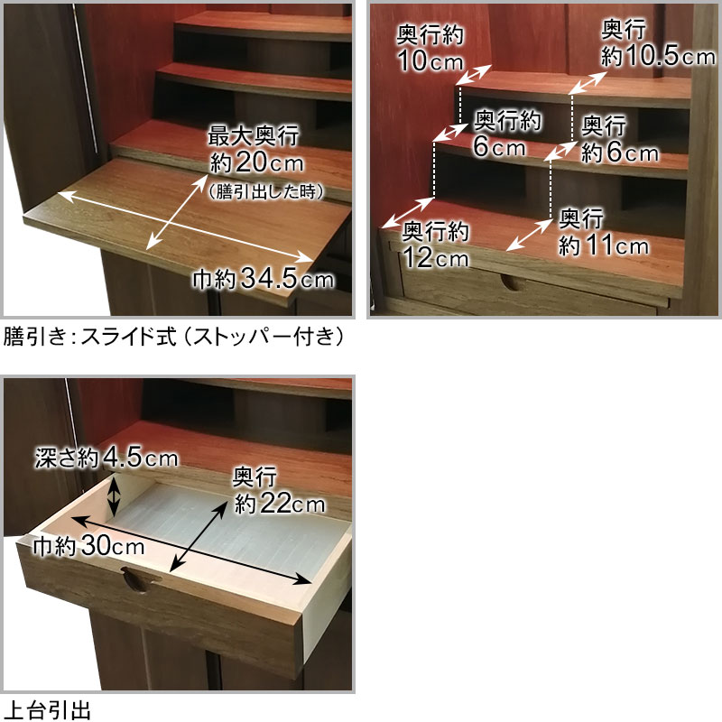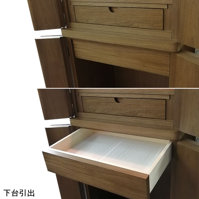 | 商品説明 | 【商品番号:3400】 ■材質詳細 ・笠、台輪/主材料:ウォールナット薄板貼り 芯材料:MDF ・戸板、扉/主材料:ウォールナット薄板貼り 芯材料:MDF ・その他/表面仕上げ:ウレタン仕上、生産地:海外 ■宗派 どの宗派でもお使いいただけます。 ■備考 ・商品は手作りの為、一部の色、デザイン、寸法が多少変更になる場合がございます。 世界三大銘木としても知られ、落ち着いた滑らかな木目が特徴のウォールナット材を使用たすっきりとしたデザインのお仏壇となっております。 引出収納が上台と下台の両方に設置されていて、お仏壇周りの小物をたっぷり収納出来ます。 内部照明には、ナツメ球を使用。暖かみのある色目でお仏壇内部を照らします。 |