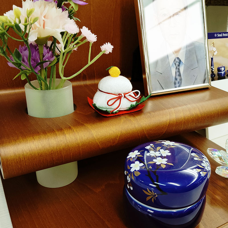 | 商品説明 | 【商品コード:3414】 ■商品詳細 ●サイズ:直径約6×高さ約4.5cm ●老舗「松栄堂」のお香入り ●素材:ちりめんレーヨン、他 ひとつひとつ手作業で作られたちりめん素材の鏡餅です。 直径約6cmと手のひらに収まるサイズで、京都の老舗「松栄堂」のお香入りとなっております。 |