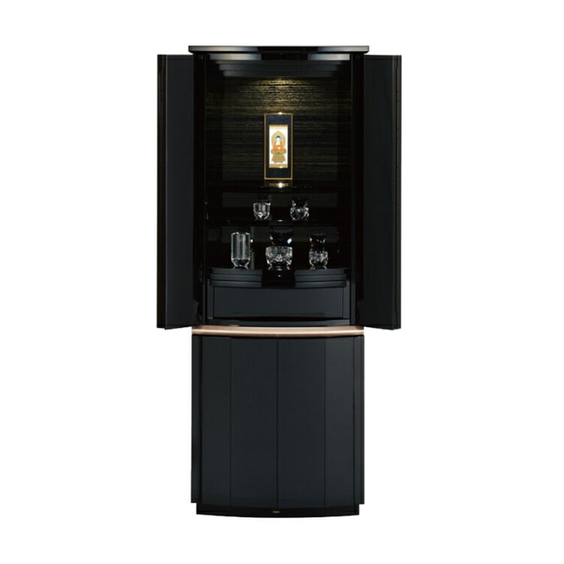 | 商品説明 | 【商品コード:3416】 ■材質詳細 ・材質/MDF ・仕上/ウレタン塗装鏡面仕上 ウレタン塗装 白金色塗装 ■宗派 どの宗派でもお使いいただけます。 ■備考 ・掲載写真の仏具などの組み合わせは一例で別売りとなります。 金色の煌めく世界を黒のコンビネーションで粛々とした空間に仕上げました。 |