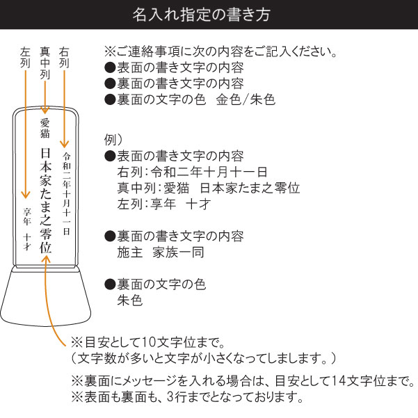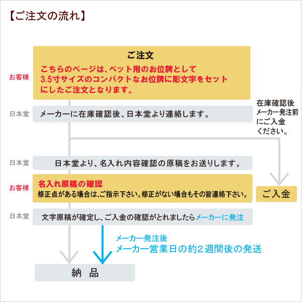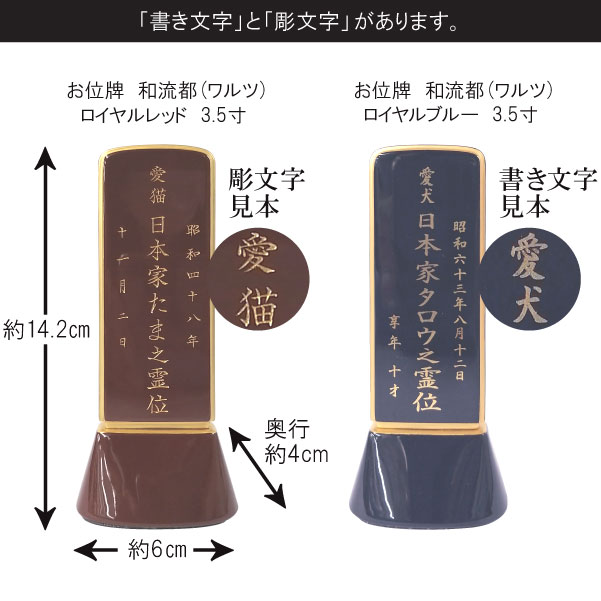 ペット用のお位牌として、3.5寸サイズのコンパクトなお位牌に書き文字をセットにしました。