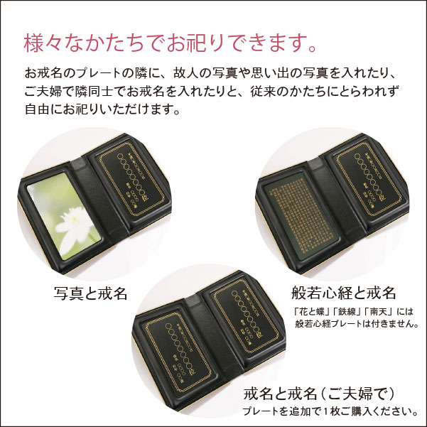 専用のプレートに戒名やお名前をお彫り致します(文字彫は別途料金)。