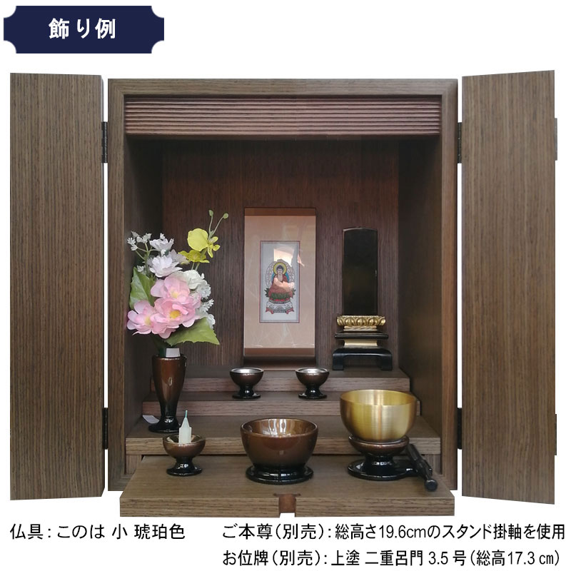 ウオールナットの落ち着いた色合いにシンプルなデザインがどのようなシーンにも合わせやすいお仏壇となっております。