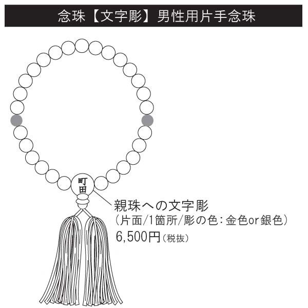 ※こちらのお値段は、「念珠(数珠)【文字彫】男性用片手念珠」1か所の彫加工のお値段となっております。
