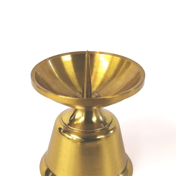 | 商品説明 | 【商品コード:2242】 ■商品詳細 ●寸法:総高さ5.5cm×底径4cm 火皿迄の高さ4.5cm ●材質:真鍮 ●色目:金色 ※各寸法の火立に対応するローソク長さは火立の皿までの高さ×1倍~最大1.5倍までです。 1.5倍を超えるローソクは立てないでください。 背の低いタイプのローソク立です。 真鋳を金色で上げた重厚感のある仕上がりになっています。 中央部分がネジで連結されています。 |
