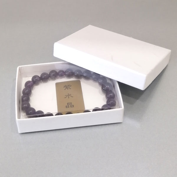 | 商品説明 | 【商品コード:2273】 ■珠の素材 ●主珠:紫水晶(約8mm) ●親珠:紫水晶(約10mm) ●天珠:紫水晶(約6mm) ■腕回りサイズ:約17センチ(内周) ■特徴 こちらの腕珠は、主珠、親珠、天珠に紫水晶を使用しております。 紫水晶の名前の由来は、ギリシャ語「amethystos」で「酒に酔わない」という意味で、古代ローマではアメジストから作られた杯でお酒を楽しむことで、お酒からだけではなく人生の悪酔いから自身を守ってくれるという言い伝えが残っています。 古代から多くの人々に愛されてきたとされる、アメジストの紫色。特に日本では、最も気高い色とされ、宗教的な儀式では非常に大切にされてきた色と伝えられています。歴史的には、聖徳太子が定めた『冠位十二階』で最高位の色として崇められていました。 腕珠(うでじゅ)は、数珠を常に腕につけていられるように小型化したもので、日本の風土に根差した伝統的なお守りです。 あくまで個人のお守りですので、お葬式などでお数珠の代わりにはなりません。 最近では、ブレスレットとしてアクセサリー感覚でも身につけられるので、自由な形で身近に楽しんで頂けます。 進物用の商品につきましては、包装をしてお届けいたします。 「志」「御祝」などの、のし紙も無料でお付けすることができます。 包装やのし紙をご希望の方は、お客様情報入力ページの「ご連絡事項」欄にご記入ください。 ■備考 ●天然素材のため商品には若干の差があります。 |