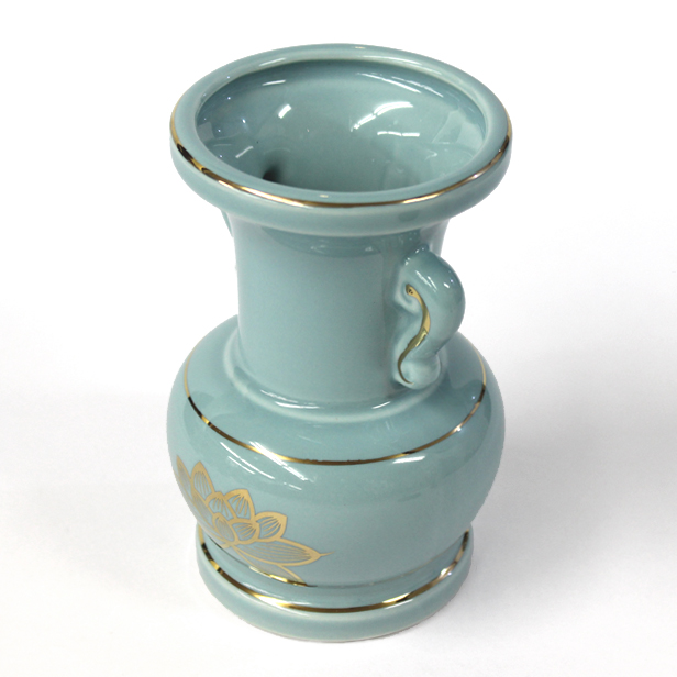 | 商品説明 | 【商品コード:2371】 ■商品詳細 ●商品サイズ:高さ12.3cm×幅8.5cm ●材質:陶器 ※絵柄は印刷です ※本製品は焼き物の為、色・サイズが多少異なる場合がございます。 お仏壇にセットする花立で、生花や金蓮華等をお飾りします。 青磁陶器で、艶のある花立となっております。 幅広の為、水が多く入り安定感もあります。 |