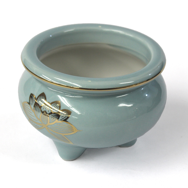 | 商品説明 | 【商品コード:2375】 ■商品詳細 ●商品サイズ:高さ7.5cm×幅10.5cm ●材質:陶器 ■宗派 どの宗派でもお使いいただけます。 ※絵柄は印刷です ※本製品は焼き物の為、色・サイズが多少異なる場合がございます。 艶のある青磁色の陶器で、金色の蓮の絵柄の入った上品な色目の香炉です。軽いので使いやすく、全宗派でお使いいただける香炉となっております。 |