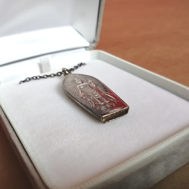 | 商品説明 | 【商品番号:200718No.18】 純銀製ペンダント型の笛です。 万一の時に笛を吹いて助けを呼べるようになっています。 万一が起こらないように聖観音の彫物が入っていてお守り替わりになっています。 コーティング無しの純銀製品の為黒ずんでいます(純銀製クロスで拭けば綺麗になります)。鎖部分も変色している部分があります。 ■商品詳細 ●サイズ: 鎖の長さ約51cm、聖観音部分の長さ約3.8cm、幅1.7cm ケース:長さ約9cm、幅約7cm、高さ約3cm ●材質:純銀製 ※未使用品ですが、アウトレット・在庫処分品の為、汚れ、キズがある場合がございます。 ※返品不可となりますので、ご了承の上ご注文ください。 |