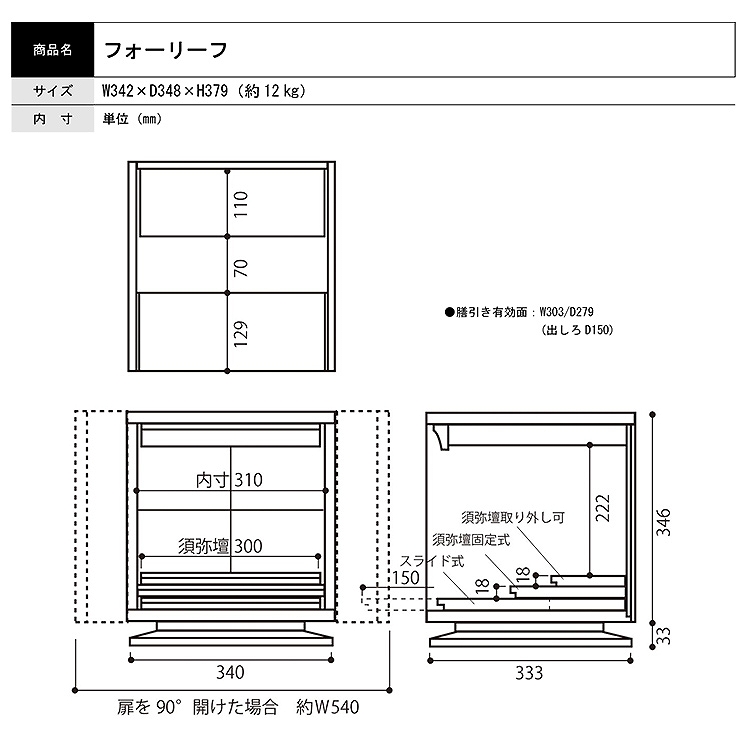 | 商品説明 | 【商品コード:2526】 ■材質詳細 ・材質/ホワイトオーク、ウォールナット ・仕上/ウレタン塗装 ■宗派 どの宗派でもお使いいただけます。 ■備考 ・掲載写真の仏具などの組み合わせは一例で別売りとなります。 小さくておしゃれな仏壇「フォーリーフ」。名前の通り、四つ葉のクローバーを思わせる扉のデザインが気持ちを和ませてくれます。一つひとつ削り出した滑らかな曲面に、ホワイトオークの柾目の突板をくるりと回して貼りあわせました。扉を開けた時の解放感や、使い勝手のよいスライド式須弥壇も見どころです。 |