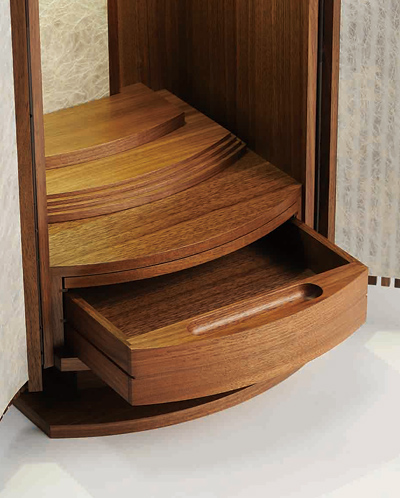 | 商品説明 | 【商品コード:2532】 ■材質詳細 ・材質/ウォールナット、アクリル、強化和紙 ・仕上/ウレタン塗装 ■宗派 どの宗派でもお使いいただけます。 ■備考 ・掲載写真の仏具などの組み合わせは一例で別売りとなります。 曲面に沿う縦桟のグラデーション。柔らかな光をほんのりと灯します。 |