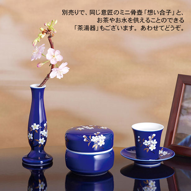 | 商品説明 | 【商品コード:2655】 ■商品詳細 ●材質:磁器 ●サイズ:高さ約11cm×幅約4.5cm ※一つ一つ手作りの為、仕上りが若干異なる場合がございますのでご了承下さい。 ※在庫状況によりお取り寄せになる場合がございます。 創業119年の伝統を受け継ぐ有田の老舗窯元、深川製磁の技術と伝統が創りあげた「瑠璃磁さくら 花生」です。 清冽なフカガワブルーに浮かぶさくら花枝に、大切な思いが鮮やかに映ります。 『瑠璃磁さくら(るりじ)』 瑠璃彩磁(るりさいじ)世界で「フカガワブルー」と賞賛される独自の鮮やかで澄みきった瑠璃色は、深川製磁ならではの熟練の技。 意匠は「さくら花枝」。日本人の心に響く可憐な美しさを咲かせました。 別売りで、同じ意匠のミニ骨壺「想い合子」と、お水やお茶を供えることができる「茶湯器」もございます。あわせてどうぞ。 特製の桐箱に深川製磁謹製の銘をお入れしてお客様にお納めいたします。 |