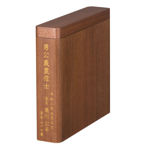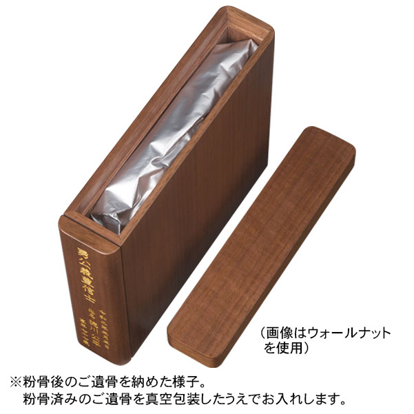 | 商品説明 | 【商品コード:2670】 ご遺骨をパウダー状に粉骨し ご自宅で、故人を偲ぶことのできる新しいご供養のかたちです。 パウダー状のご遺骨全体を特許出願した方法によりコンパクトに納めることができる箱のシリーズです。 骨は地球の恵みによってできた結晶であり、サラサラとなった骨はやがてまたその地球という星のかけらとなって循環していく。 「星粒の箱」はそんな思いから付いた名です。 星粒の箱 レストは、お仏壇の下台や書棚などに安置しやすいブック型。 磁石で着脱可能な前板には、戒名やメッセージなどの刻印をお入れすることができます。 ■商品詳細 ●材質:ウォールナット ●サイズ:高さ24.5cm×幅6cm×奥行26.5cm ●刻印代は文字数に関わらず一律 4、180円(税込) ※粉骨、洗骨には別途料金が必要です。 |