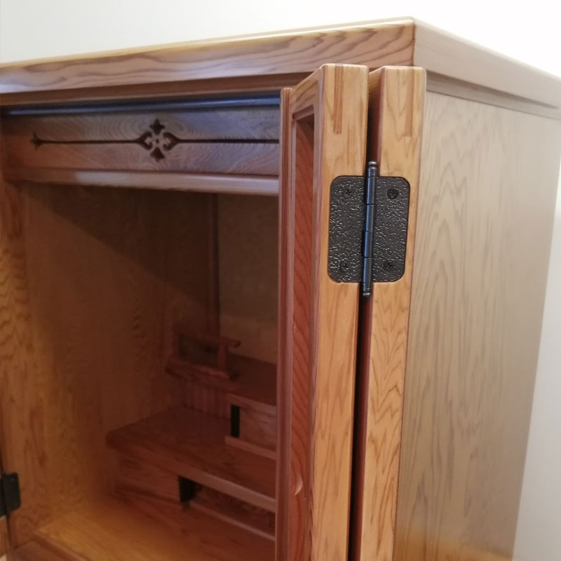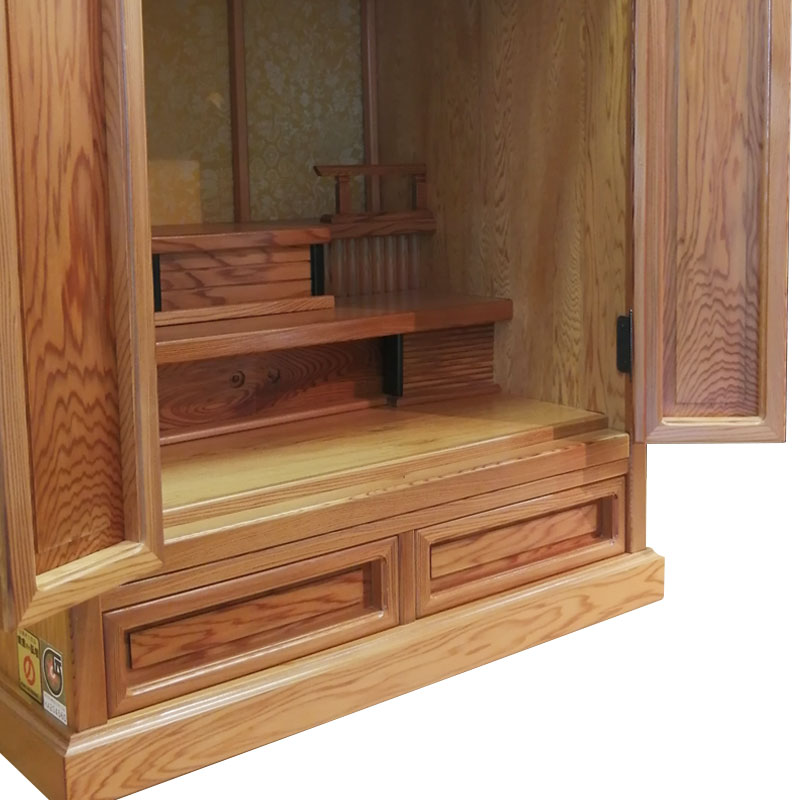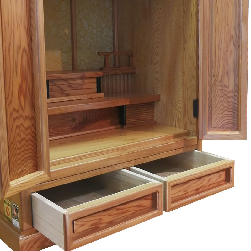 | 商品説明 | 【商品コード:2703】 ■材質詳細 ・笠、台輪/主材料:屋久杉製厚板貼り 芯材料:米杉 ・戸板、扉/主材料:屋久杉無垢 芯材料:屋久杉無垢 ・大戸軸/主材料:両面無垢貼り 芯材料:米杉 ・その他/表面仕上げ:ラッカー・摺漆仕上げ、生産地:日本 ■宗派 どの宗派でもお使いいただけます。 ■備考 ・商品は手作りの為、一部の色、デザイン、寸法が多少変更になる場合がございます。 伝統工芸士の匠の技が光る木瓜造の逸品です。小型ながら二枚戸造りなので希少材屋久杉の木目を充分堪能できる逸品です。 【東京仏壇:東京都伝統工芸品東京仏壇とは】 東京仏壇の歴史は、1603年に徳川家康が江戸に開府したことにはじまります。宗教政策の一環として仏寺の建立発展を進めた結果、八代将軍吉宗の時代には一般庶民が競って仏壇を祀るようになりました。その需要に応えるべく、江戸指物師や仏師が独自の技法をつぎこみ仏壇をこしらえたのが、東京仏壇の原型です。 その後、1840年ころからは東京仏壇に唐木が使われるようになり、木地本来の持ち味を生かしながら古典的な優美さも残した、丈夫で長持ちする実用本位の仏壇がつくられます。この伝統と技術を受け継いだ職人(伝統工芸士)が丹念に手づくりしたものが、現在わたしたちが目にする東京仏壇なのです。 現在、東京都伝統工芸品東京仏壇には伝統工芸品である証の伝産マークとシリアルナンバーが記された証紙(シール)が貼付されております。お求めの際はこの証紙をお確かめの上、類似品にはご注意ください。 |