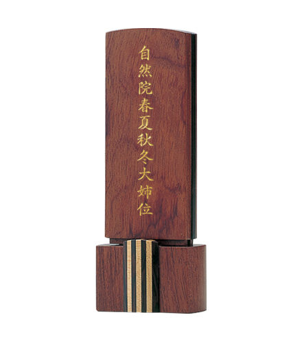 | 商品説明 | 【商品番号:2759】 おしゃれなストライプを寄木細工で施したモダンな位牌です。 ●札丈 4.0号(12cm):高さ16.0cm×幅6.2cm×奥行3.2cm 39、600円(税込) ●札丈 4.5号(13.5cm):高さ18.0cm×幅7.0cm×奥行3.2cm 41、800円(税込) ●札丈 5.0号(15cm):高さ20.0cm×幅7.6cm×奥行3.9cm 44、000円(税込) ■商品詳細 ●商品タイプ:木製位牌 ●材質:ブビンガ、ウェンジ、メープル ●仕上:ウレタン塗装 ●生産国:日本 ※天然木のため一品一品の柄・色味が異なります。 ※寸法は商品と多少異なる場合がございます。 ※上記価格はお位牌本体の料金です。名入れの料金は含まれておりません。 名入れは別途「書き代」又は「彫り代」が必要です。 ※メーカー発注品となります。 ご注文・お問合せを頂いてからメーカーに在庫の確認を致します。(ご注文の流れをご参照ください) ※ご入金確認後にメーカー発注となりますので、お支払い方法で「商品代引き」以外を選択してください。 ※名入は、お客様に名入れの原稿確認をして頂き、文字確認原稿確定後 機械彫の場合は「メーカー営業日の約2週間後の発送」、機械書きの場合は「メーカー営業日の約20日後の発送」となりますので、余裕をもってご注文ください。 |