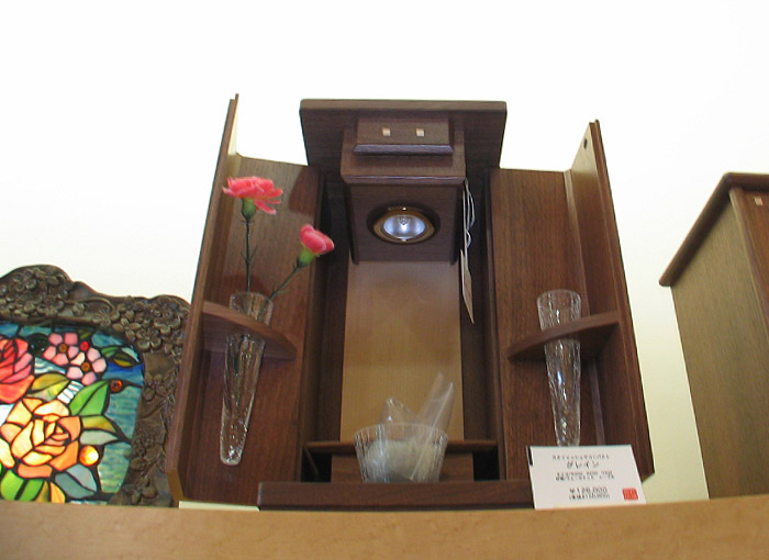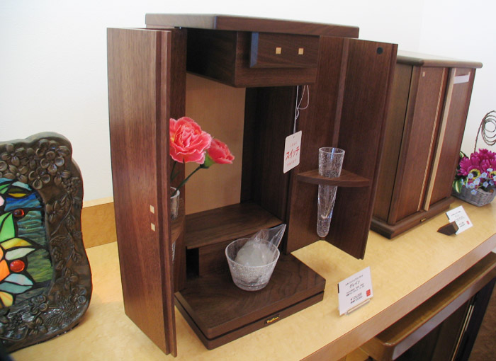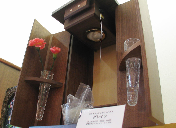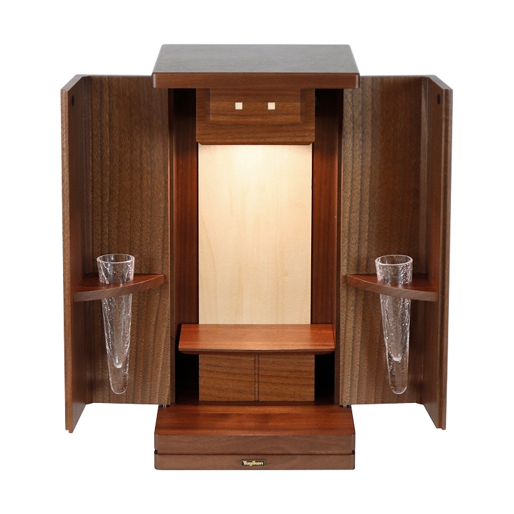 | 商品説明 | 【商品コード:1710】 ■材質詳細 ・材質/ウォールナット、メープル ・仕上/ウレタン塗装 ・付属品/一輪ざし花立2ヶ、香炉1ヶ(クリスタルビーズ付) ■宗派 どの宗派でもお使いいただけます。 ■備考 ・掲載写真の仏具などの組み合わせは一例で別売りとなります。 ウォールナットとメープルの美しい木味を活かしたシンプルなクラフト。 吹きガラスの一輪差しと香炉でオシャレに・・・。 |