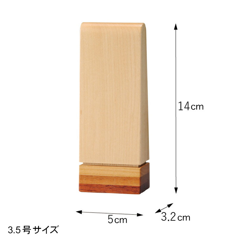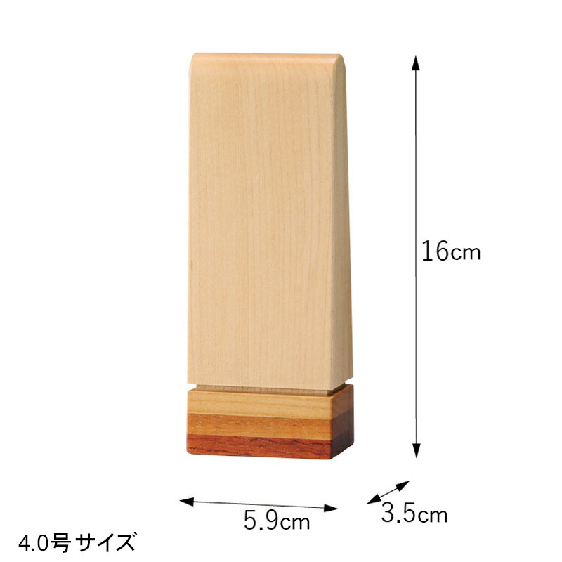 | 商品説明 | 【商品番号:2829】 台座の部分が寄せ木のグラデーションになったクラフト位牌です。 ●札丈 3.5号(10.5cm):高さ14.0cm×幅5.0cm×奥行3.2cm 35、750円(税込) ●札丈 4.0号(12.0cm):高さ16.0cm×幅5.9cm×奥行3.5cm 37、950円(税込) ●札丈 4.5号(13.5cm):高さ18.0cm×幅6.8cm×奥行3.8cm 40、700円(税込) ■商品詳細 ●商品タイプ:木製位牌 ●材質:メープル、アルダー、ニヤトー、ブビンガ ●仕上:ウレタン塗装 ●生産国:日本 ※金色の文字は見えにくくなります。 ※天然木のため一品一品の柄・色味が異なります。 ※寸法は商品と多少異なる場合がございます。 ※上記価格はお位牌本体の料金です。名入れの料金は含まれておりません。 名入れは別途「書き代」又は「彫り代」が必要です。 ※メーカー発注品となります。 ご注文・お問合せを頂いてからメーカーに在庫の確認を致します。(ご注文の流れをご参照ください) ※ご入金確認後にメーカー発注となりますので、お支払い方法で「商品代引き」以外を選択してください。 ※名入は、お客様に名入れの原稿確認をして頂き、文字確認原稿確定後 機械彫の場合は「メーカー営業日の約2週間後の発送」、機械書きの場合は「メーカー営業日の約20日後の発送」となりますので、余裕をもってご注文ください。 |